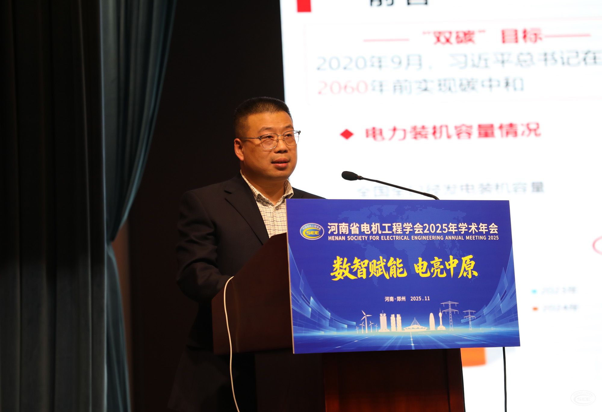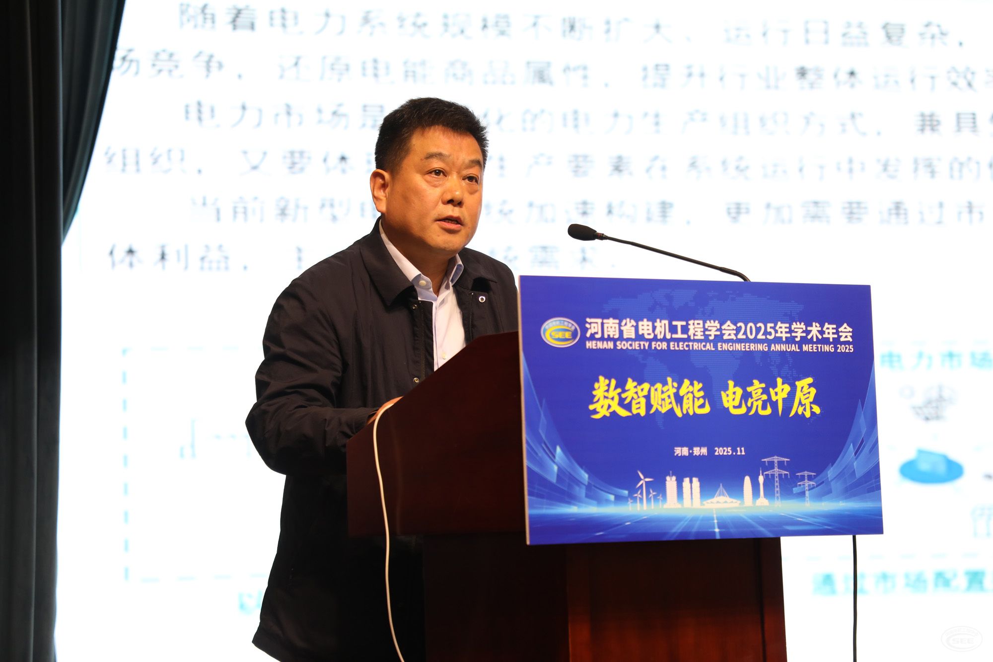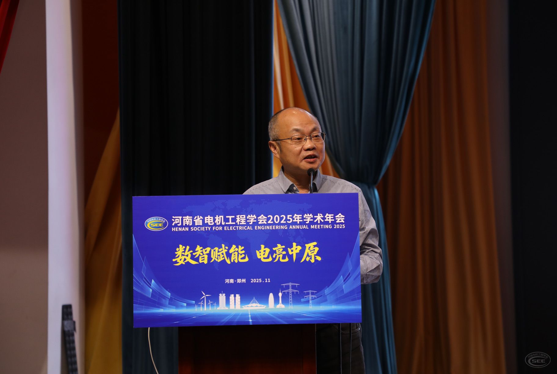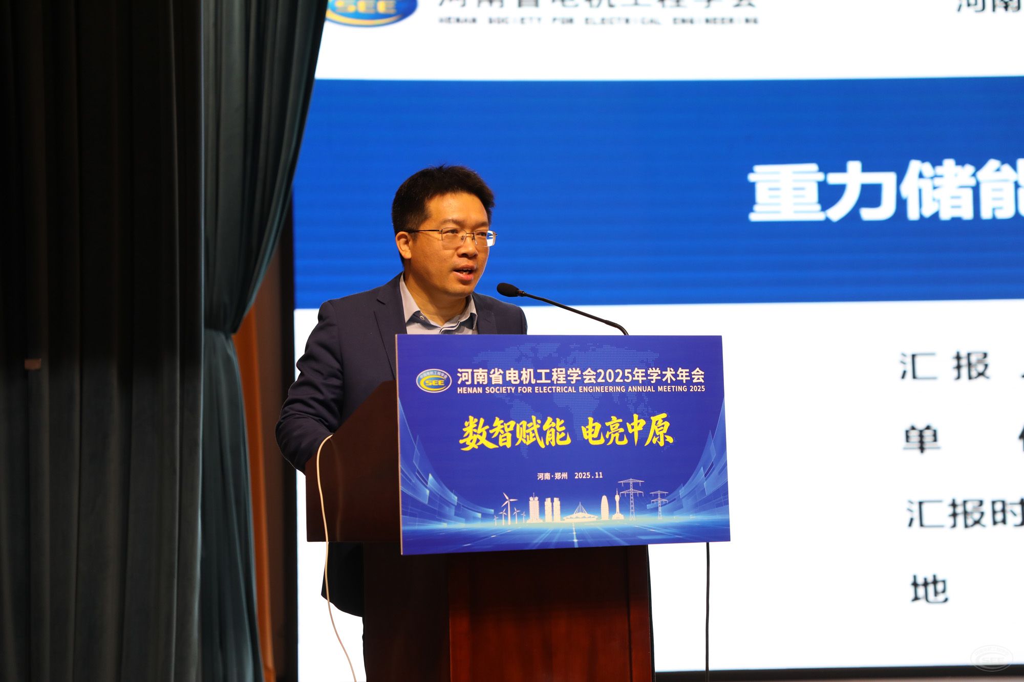 11月11日,河南省电机工程学会2025年学术年会在郑州召开。会议以“数智赋能 电亮中原”为主题,聚焦安全绿色智能、服务双碳目标,深入探讨构建新型电力系统、促进能源转型发展的关键技术和重大课题,邀请5名行业专家学者作主旨报告,举办2025年河南电力青年科技沙龙等8场专题学术交流活动。学会理事长吴加新出席会议并致辞。学会副理事长翟焱,监事长盛卫平出席会议。学会秘书长孙启伟主持大会开幕式,副秘书长和萍主持大会主旨报告。