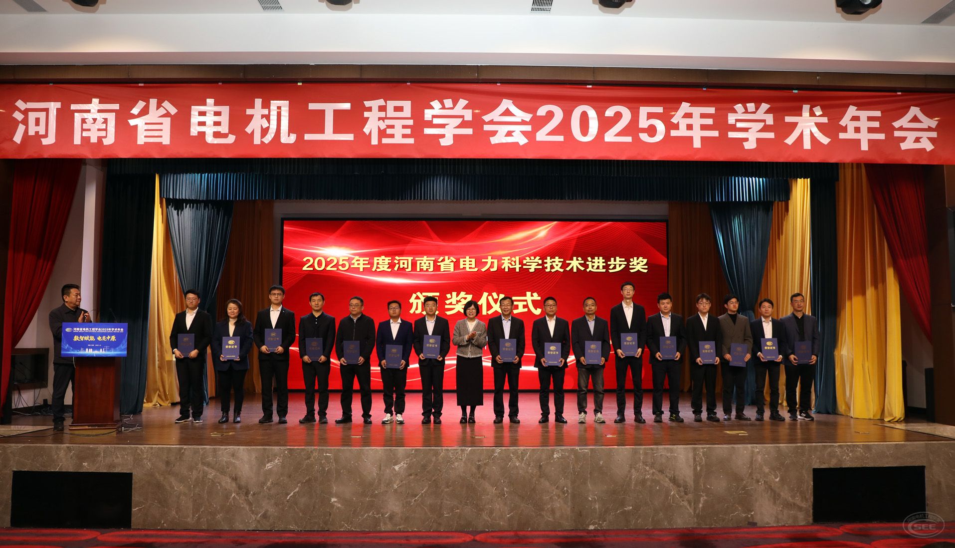 会议对2025河南省青年五四奖、河南省电力科技进步奖、河南省电力科技人物奖获奖代表颁奖。学会常务理事、理事、监事,各专委会主任委员负责同志,获奖代表及我省电力行业科技工作者共计550余人参加大会及分会场相关活动。